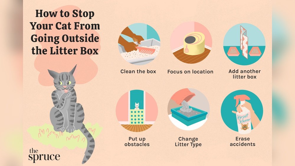 Clean places where your cat pooped outside the box. Use enzyme cleaners to remove smells. This stops your cat from pooping there again.